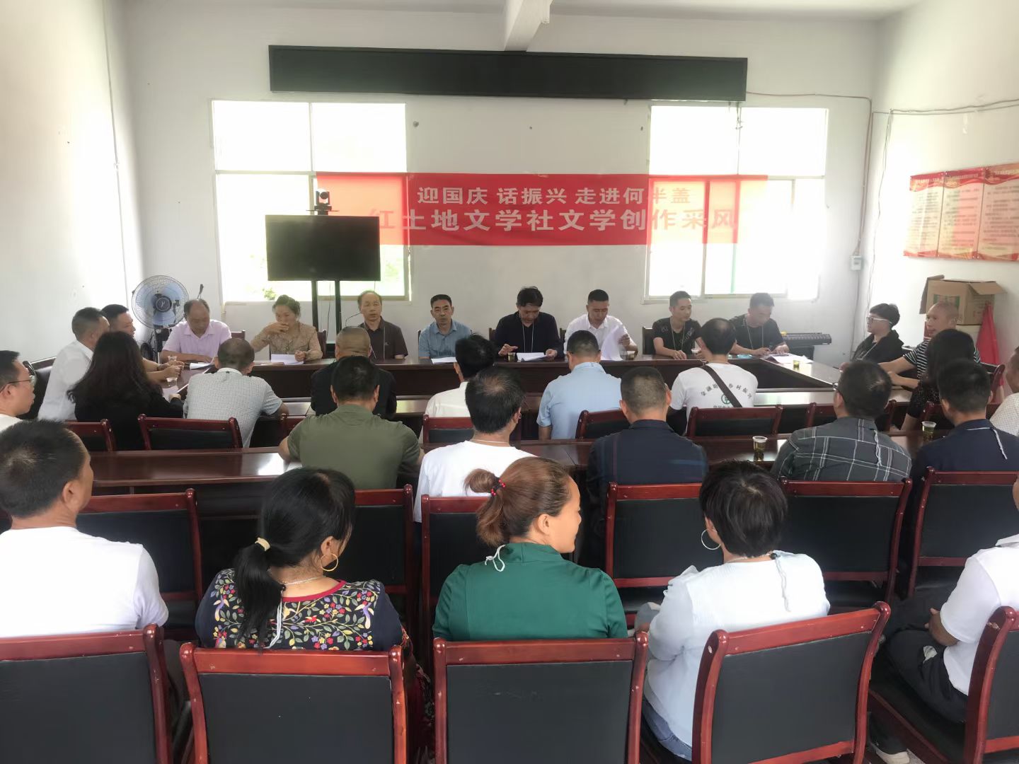 在后兴村委二楼会议室举行的活动启动仪式上,后兴村党支部书记崔海波致欢迎辞,并向采风团一行介绍了何半盖民国时期孙中山先生“八大炮"之一滦州都督何朝辅的老宅,以及被称为“包谷大王”的国民党伪乡长何玉洪修筑的六合门雕楼何家大院。县作家协会副主席袁宏在《勇立潮头唱大风》致辞中说:“红土地文学社在中国通俗文艺研究会直接主管和酉阳作家协会的指导下为培养酉阳乃至全国的文学青年作出了一定贡献,新中国成立72周年之际,举办这次文学创作采风活动有助于酉阳乡村振兴的发展。” 文学社发起人、中国通俗文艺研究会理事崔荣德希望与会社员紧跟时代步伐,用自己手中的笔记录新时代,写出时代的精品。